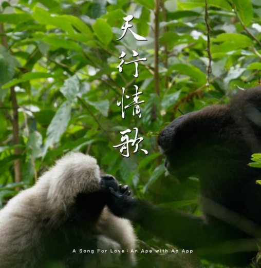 如果说视听呈现是自然纪录片影像意义表达的第一层面,那么叙事则是自然纪录片影像意义系统的第二层面。一部优秀的自然纪录片会在展现普及自然科学知识的同时,兼顾艺术美学表现手法,用国际通用语言展现生态故事。《天行情歌》中,天行长臂猿的“天行”二字,英文翻译为SkyWalker(天行者),既展现该长臂猿具有在树上灵活行走的功夫,又为中国的长臂猿保护行动赋予了更加鲜明的国际标识。