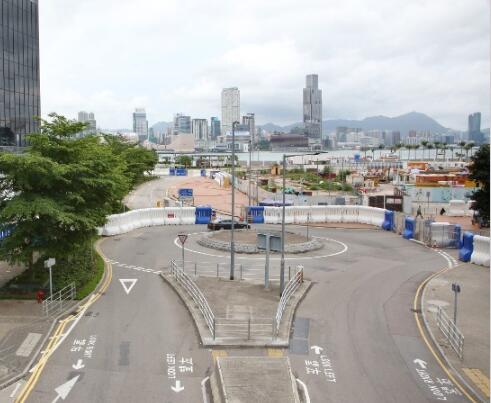 立法会附近立交桥也设有水马等防护设施。