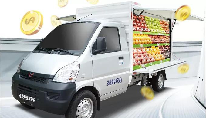 五菱榮光翼開啟售貨車車廂全開啟,商業活動功能、機動性強,佔地面積小。