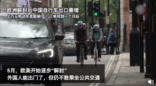 數據顯示,5月份中國自行車和電動車對歐出口量暴漲,生產廠家加班加點,訂單仍然排到1個月後。民眾瘋狂搶購自行車,中國自行車和電動車出口量暴漲,某跨境電商平台上西、法、意等市場自行車銷售額全線上漲,西班牙暴漲22倍,意大利、英國也都增長了4倍左右,就連上萬元的“土豪”電動車也被搶購一空。
