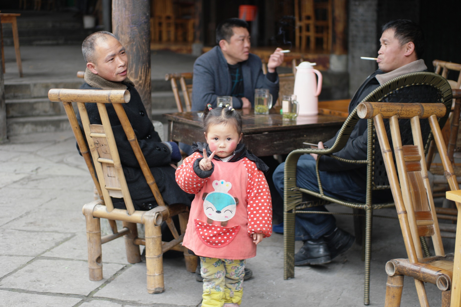細看當地人生活,是逛古鎮最大的樂趣,這位「紅蘋果」小妹妹便逗得同行者十分開心,十分可愛。