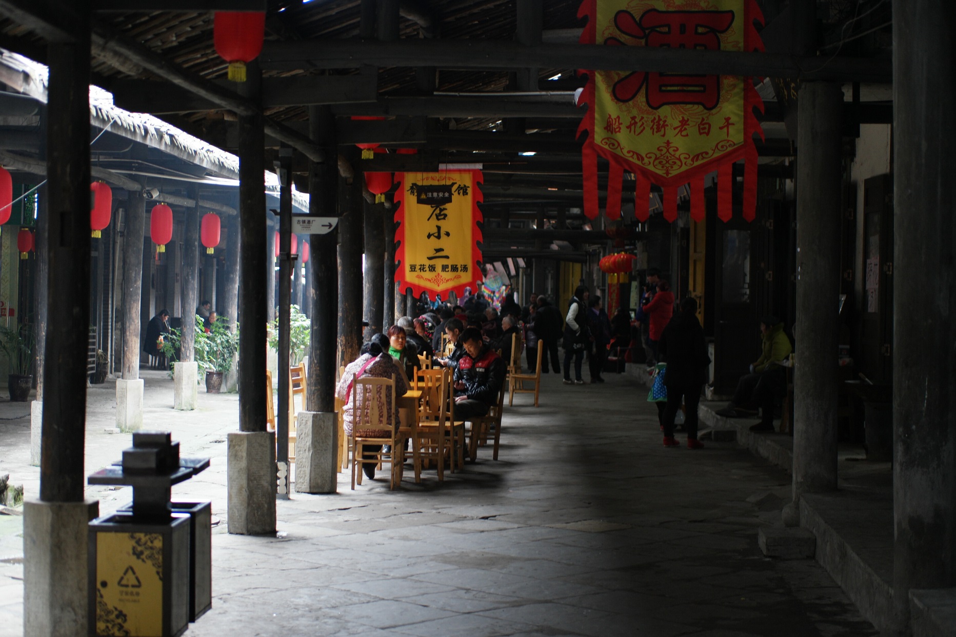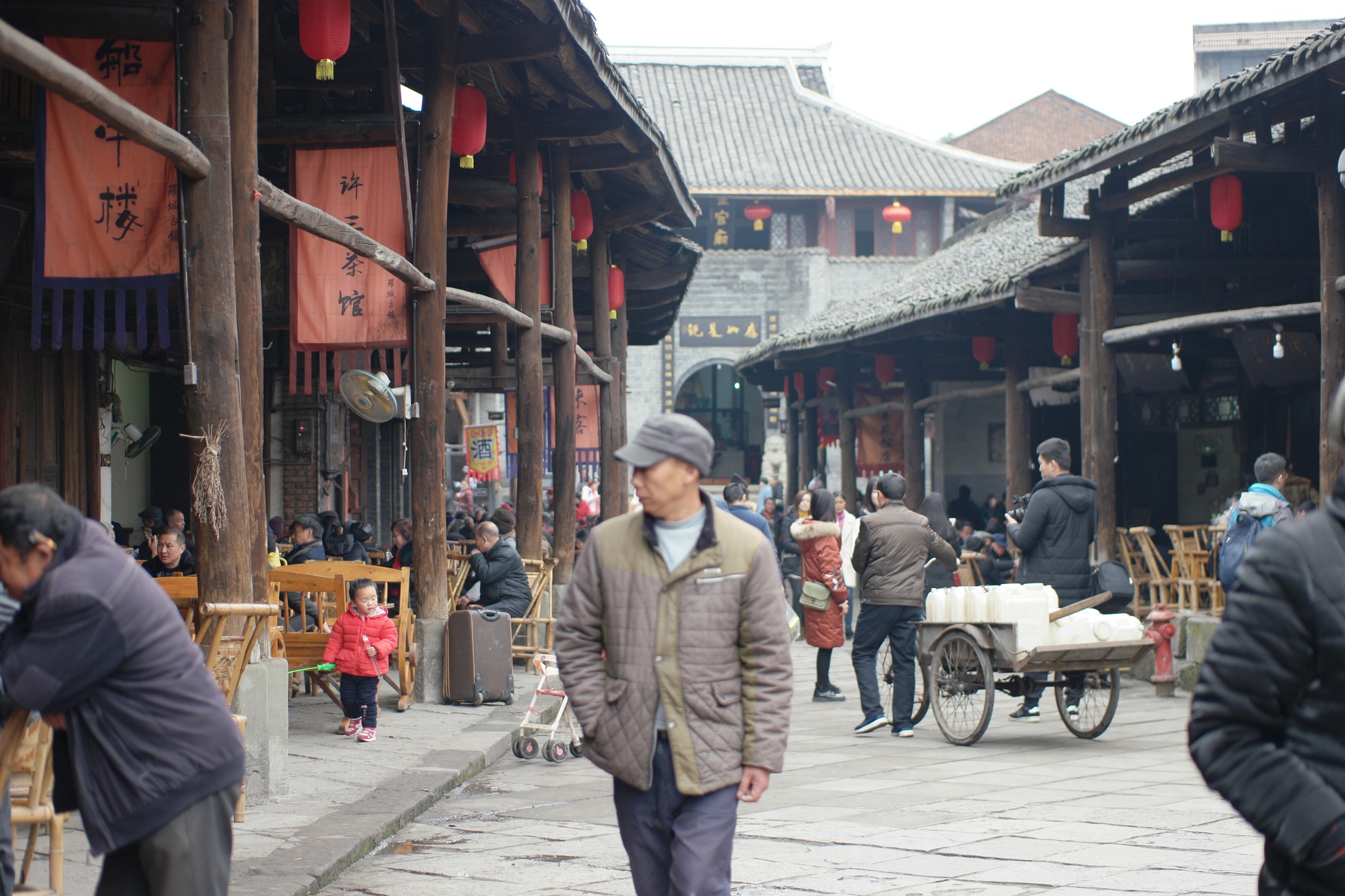 街道兩側的涼亭,人們喝喝茶、聊聊天,悠然自適,古鎮閒情非常吸引。