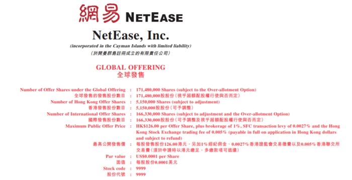 网易6月2日披露的招股书显示,网易在港交所主板新发行17148万股普通股。6月7日,网易最终发售价确定为每股123.00港元。以此计算,网易香港上市的募资规模在210.92亿港元。待港交所批准后,股份预期将于6月11日在港交所主板以股份代号9999开始交易。