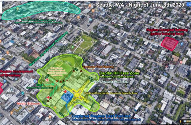 美国福克斯新闻报道称,西雅图警察局8日向警员发送备忘录,称已决定解除街道封锁,并撤退警力。但警察撤离的同时,示威者却依然留在原地。他们在西雅图警察局东分局附近竖起路障,把6个街区划定为「自治区」。「今日俄罗斯」(RT)称,示威者宣布这一地区名叫「国会山自治区」或「自由国会山区」(Free Capitol Hill Zone)。