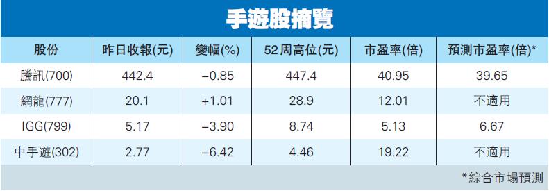 手遊股中,IGG(799)是博反彈之選,公司近年業績不算亮麗,去年收入51.7億元,按年跌10.8%;純利12.77億元,按年跌12.9%,但未來仍具增長潛力。