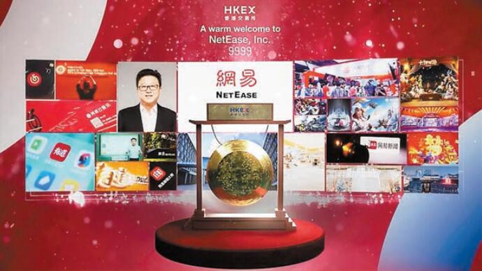 昨日,网易以 「雲敲锣」 方式在港交所上市。 中通社