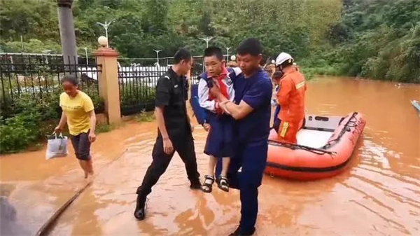 湖南衡阳县石市镇灵川村因地势较低,街道水位涨到1米多,灵川幼儿园16名儿童被困。当时进出该村的道路被淹,山体滑坡风险不断,救援人员坚持涉水步行,沿路插上标记,将被困儿童全部安全转移。