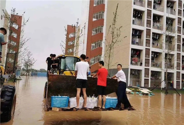 因连日暴雨导致校内积水过深,学生出门不便,广西师範大学雁山校区出动 铲车为学生送去早餐。