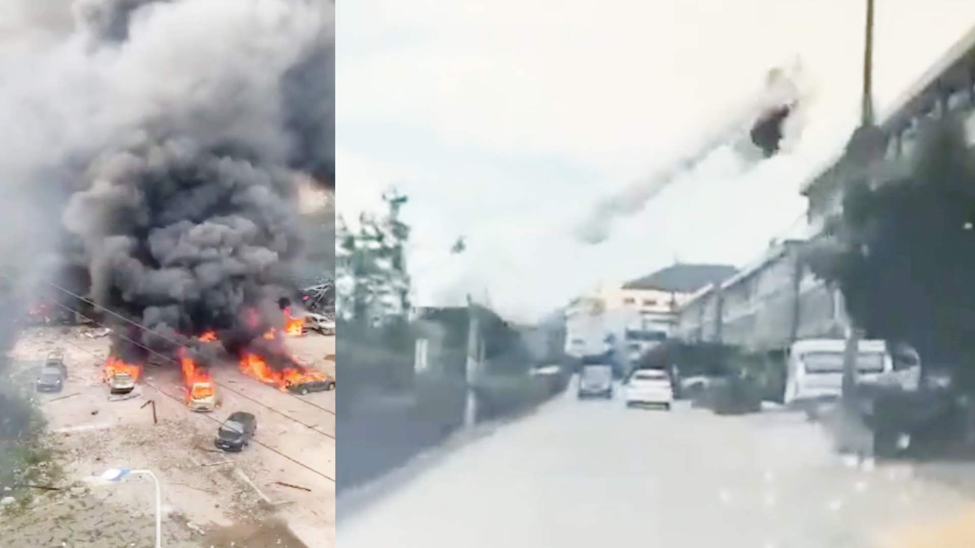 爆炸事故造成周边房屋、车辆严重损毁,现场视频记录到,事故车辆车头被炸出约100米外,落在高速公路侧下方的草坪上。