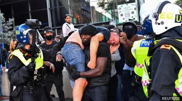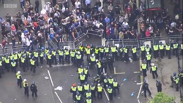英国首都伦敦及其他地区反种族歧视抗议周末持续进行,香港时间今天(14日)上午9时许,伦敦警方与主要由白人极右分子组成的示威者在伦敦市中心爆发激烈冲突,有逾百人被警方拘捕。