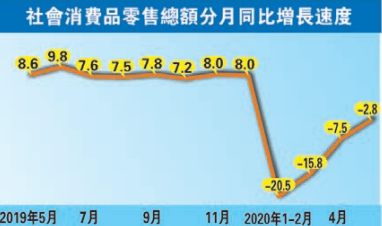 周茂華亦指出,5月零售銷售、固定投資同比增速仍收縮,顯示經濟活動距離去年5月水平仍有一步之遙,6月經濟數據表現將決定二季度GDP是否重返擴張區域。