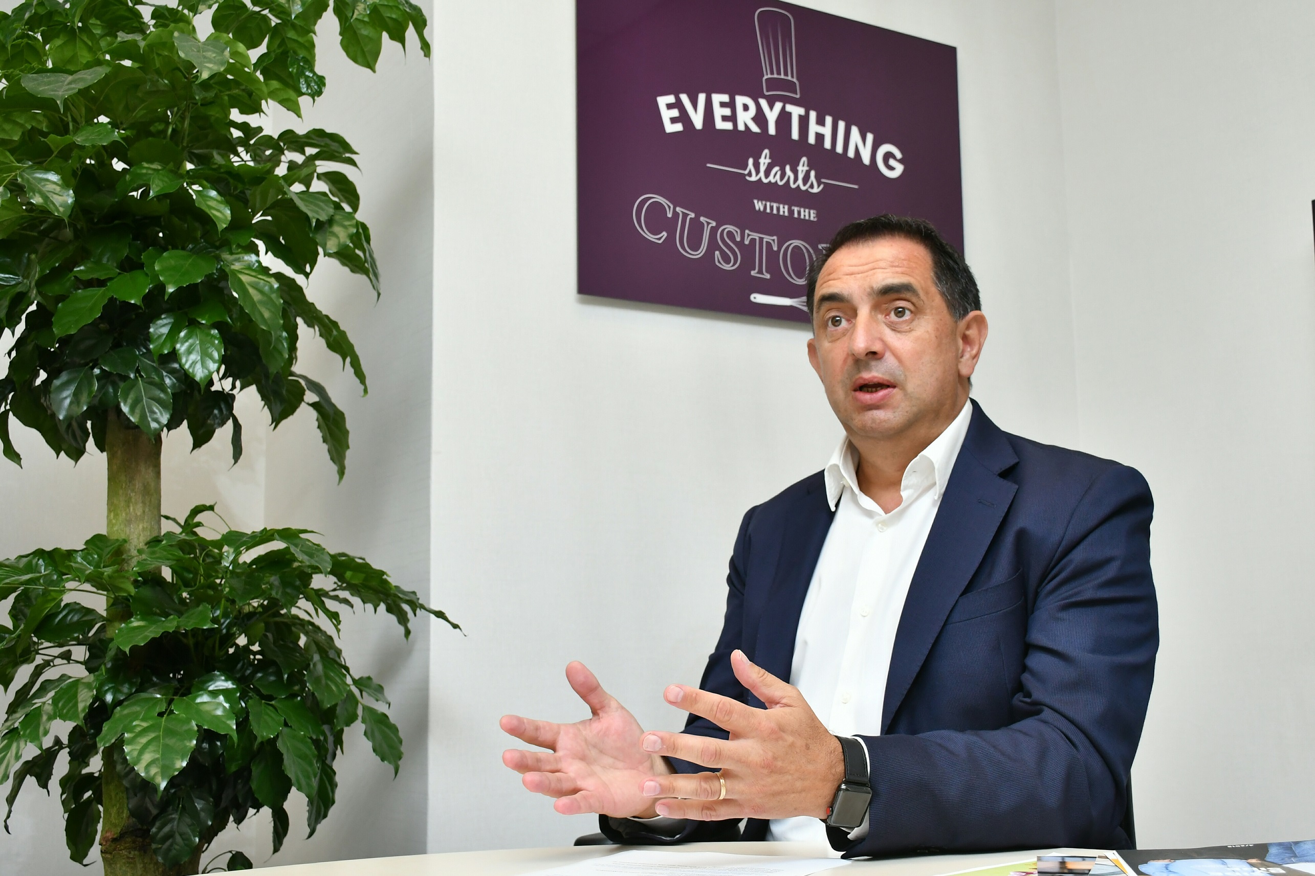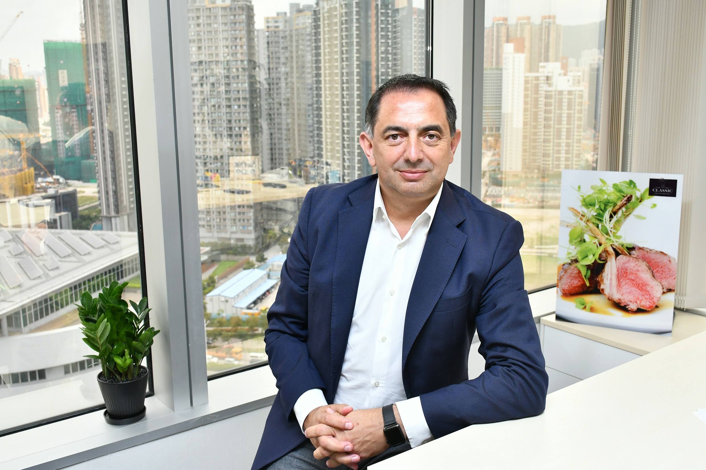 國際500強企業麥德龍(Metro)集團屬下的跨國高級食物進口和分銷公司Classic Fine Foods行政總裁Christophe Barret接受本報獨家專訪,剖析疫情如何影響香港乃至全球食物供應鏈的運作。 (馮瀚文攝)