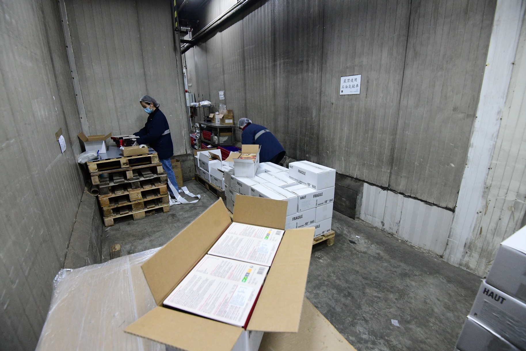 ▲工人密鑼緊鼓地拆貨,並核對訂單內容。