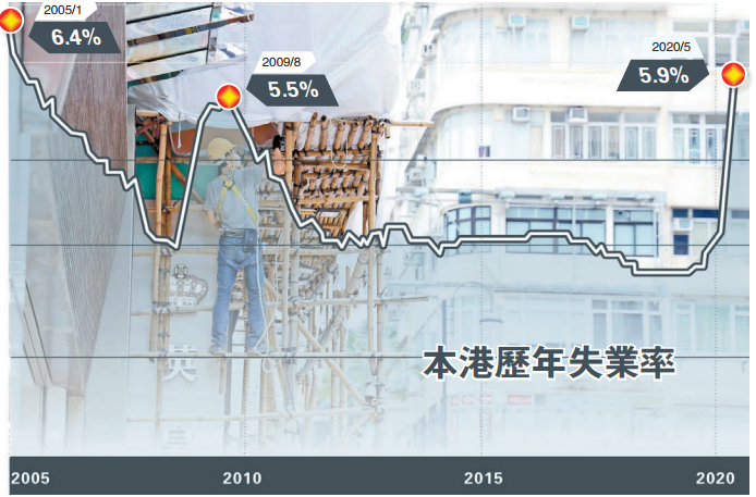 渣打大中華區高級經濟師劉健恒稱,雖然本港經濟有望在第二季尾開始走出谷底,惟勞動市場表現通常反應滯後,加上全球主要發達市場仍在衰退,跨境人流活動備受限制,經濟活動難以呈V形急速反彈,料本港失業率將於第三季升越6%。