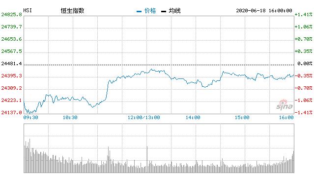 【香港商报网讯】恒指今早U型震荡,早盘低开0.39%报24386点,开盘后恒指迅速跳水,盘中最低跌近360点,低见24121点,午盘前回升至24400点附近。