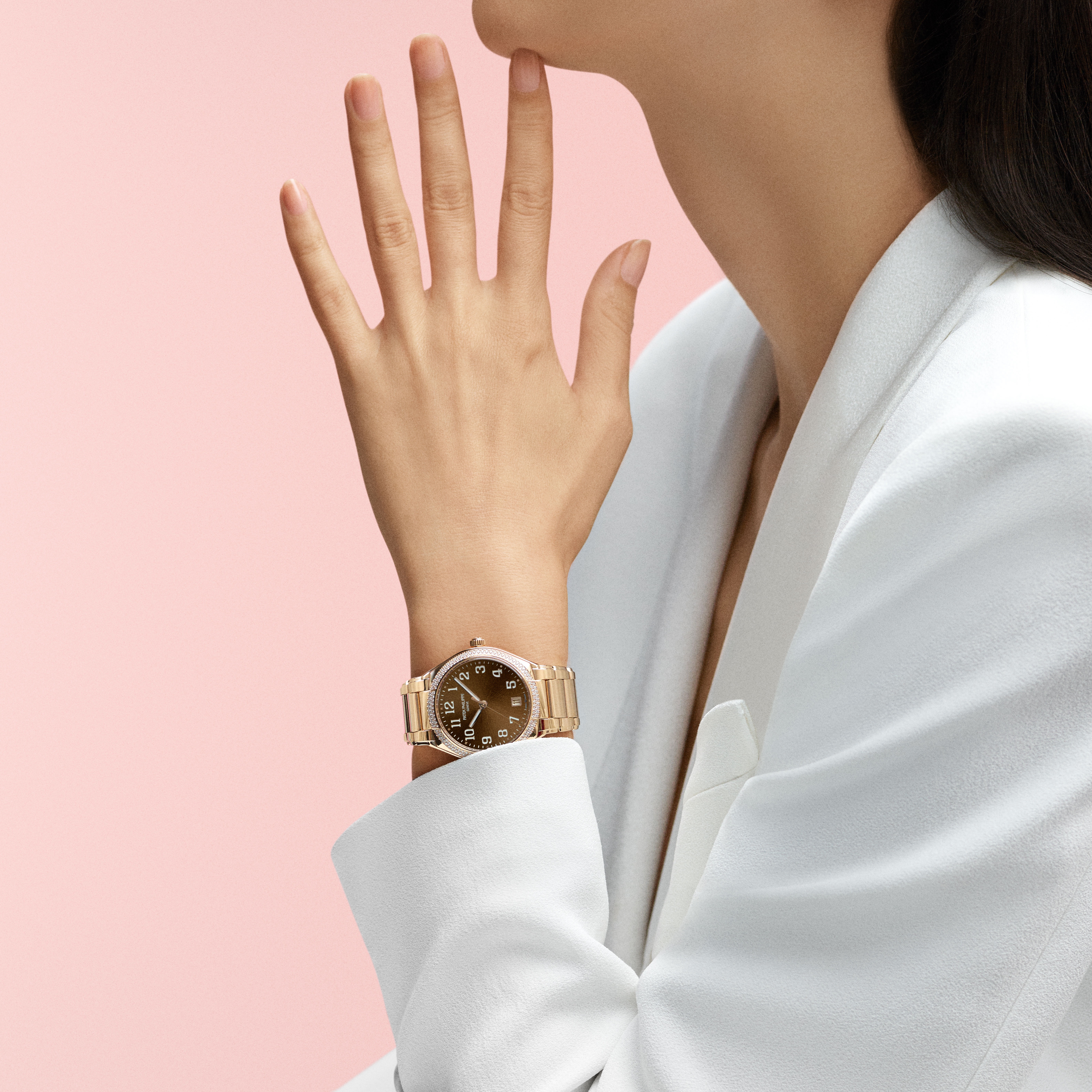 隨着時尚女性對於機械時計的興趣日隆,品牌推出全新自動上弦腕表Twenty~4 Automatic。腕表匹配女士各式衣裳,不論戶外輕裝還是隆重晚裝,皆合襯無間。這款女裝腕表選用324 S C機芯,自動上弦機芯配以Spiromax游絲,由Silinvar物料製造,整枚機芯按照品牌印記嚴格標準打造,展現人手加工的精巧細節,如削角、打磨邊緣及日內瓦條紋裝飾等,在寶石玻璃表殼底蓋下一覽無遺。此表款採用大三針設計,6時位置設有日期顯示窗,表冠拉出可設定日期,功能性強。
