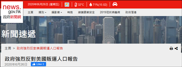 發言人稱,2019年,各相關部門共進行超過7500次販運人口受害人初步識別審核,只有3人被識別為受害人。這一數據印證了販運人口不是香港普遍存在的問題,也從來沒有任何象顯示犯罪集團以香港作為販運人口的目的地或中轉站。報告反對上述情況卻又未能提出任何實質證據的行為,實在是不負責任之舉。用如此結果去攻擊香港在打擊販運人口方面有所不足,極度不公平、不合邏輯。