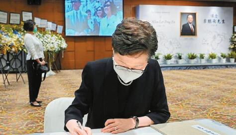行政長官林鄭月娥昨出席李鵬飛追思會並簽署弔唁冊。
