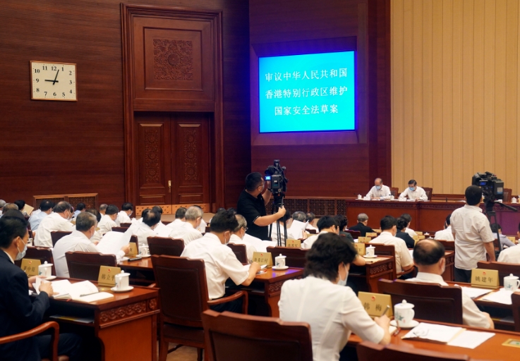 據央視報道,十三屆全國人大常委會第二十次會議昨天上午舉行分組會議,審議香港特別行政區維護國家安全法草案。栗戰書委員長參加審議。