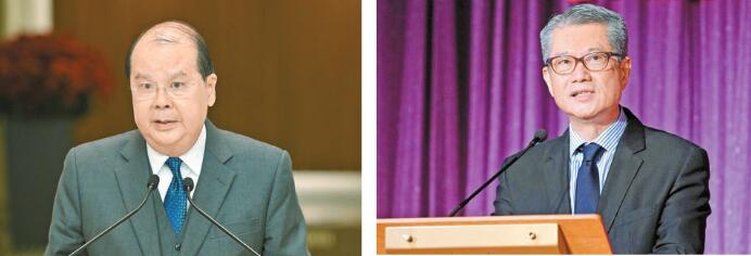 張建宗(左)與陳茂波表示,涉港國安立法將確保香港長期繁榮穩定。資料圖片
