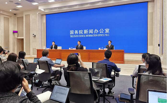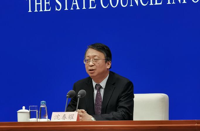 全国人大常委会法工委主任沈春耀介绍香港国安法情况。本报记者摄