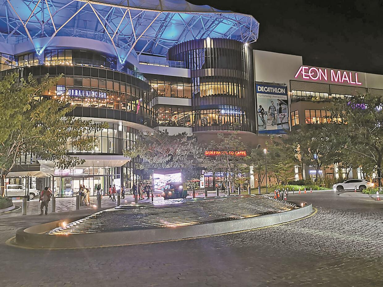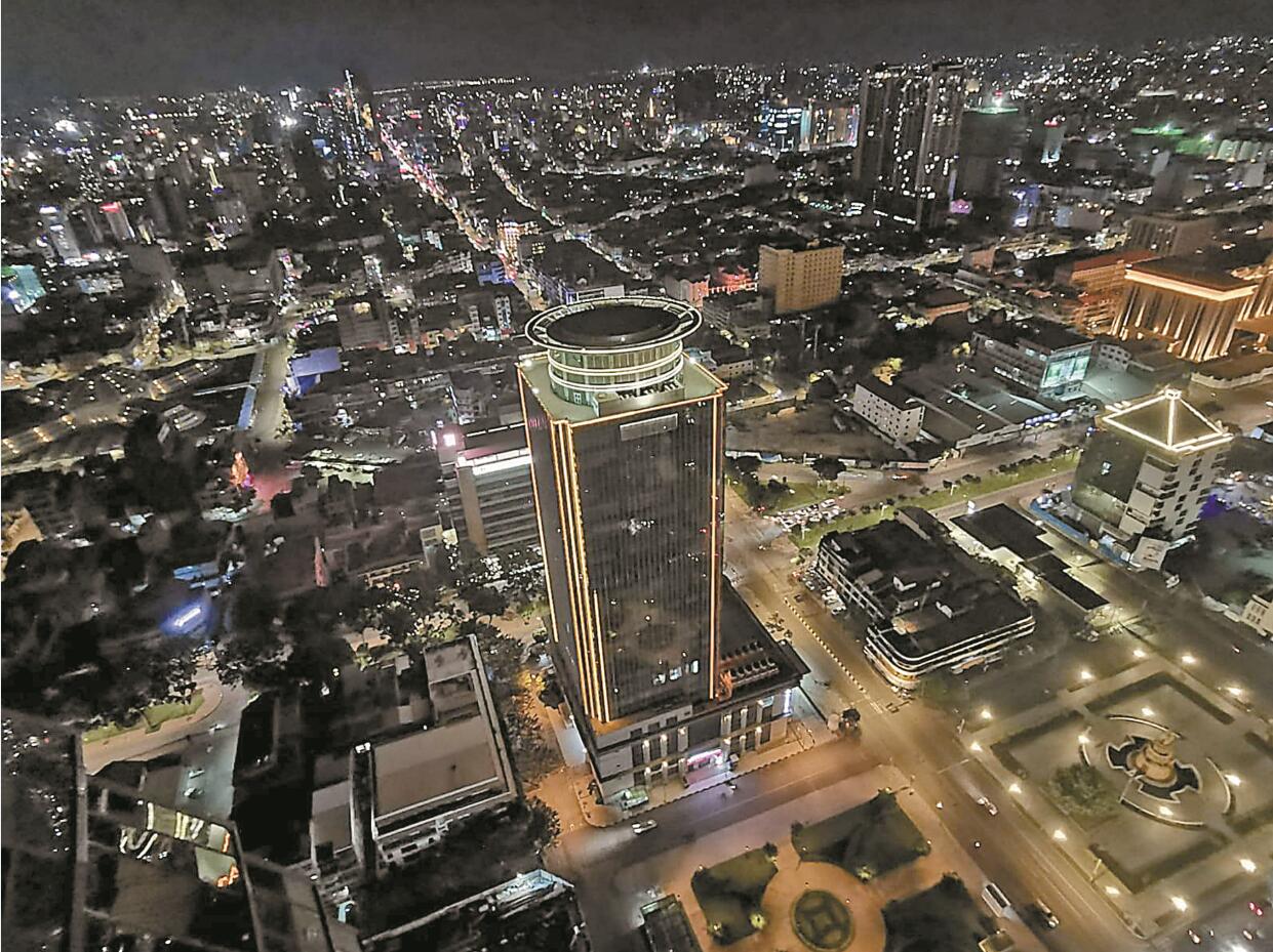 金邊瑰麗酒店索拉天空酒吧下的夜景。