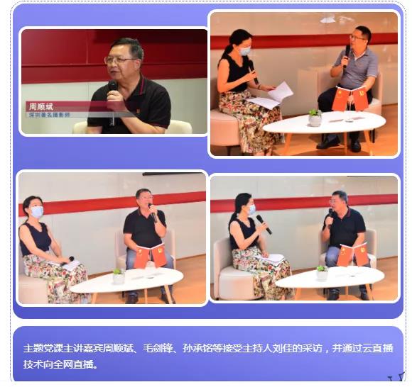 这次主题党课运用“云直播”技术在壹深圳移动客户端播出,通过播放影像、党员讲述等形式,分“革命”“建设”“改革”三个篇章,重温红色历史,缅怀革命先辈,传承红色基因。