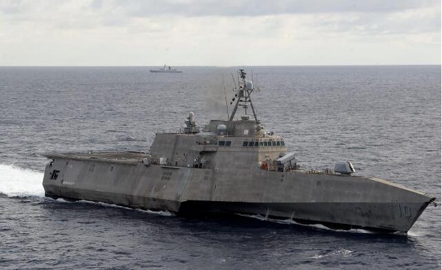 “吉福兹”号濒海战斗舰背后出现中国海军护卫舰身影