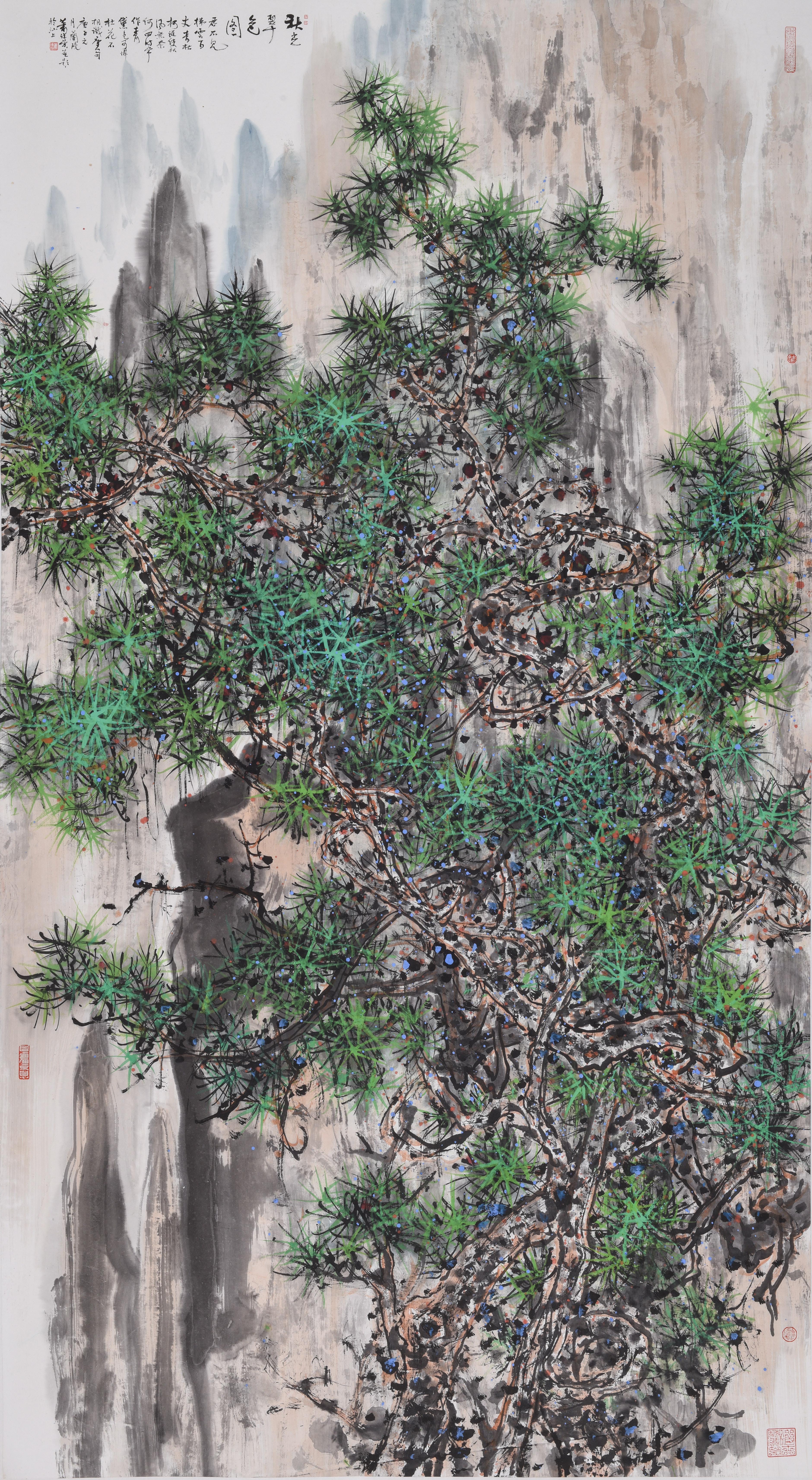 蕭暉榮作品《秋光翠色圖》。154x84cm。