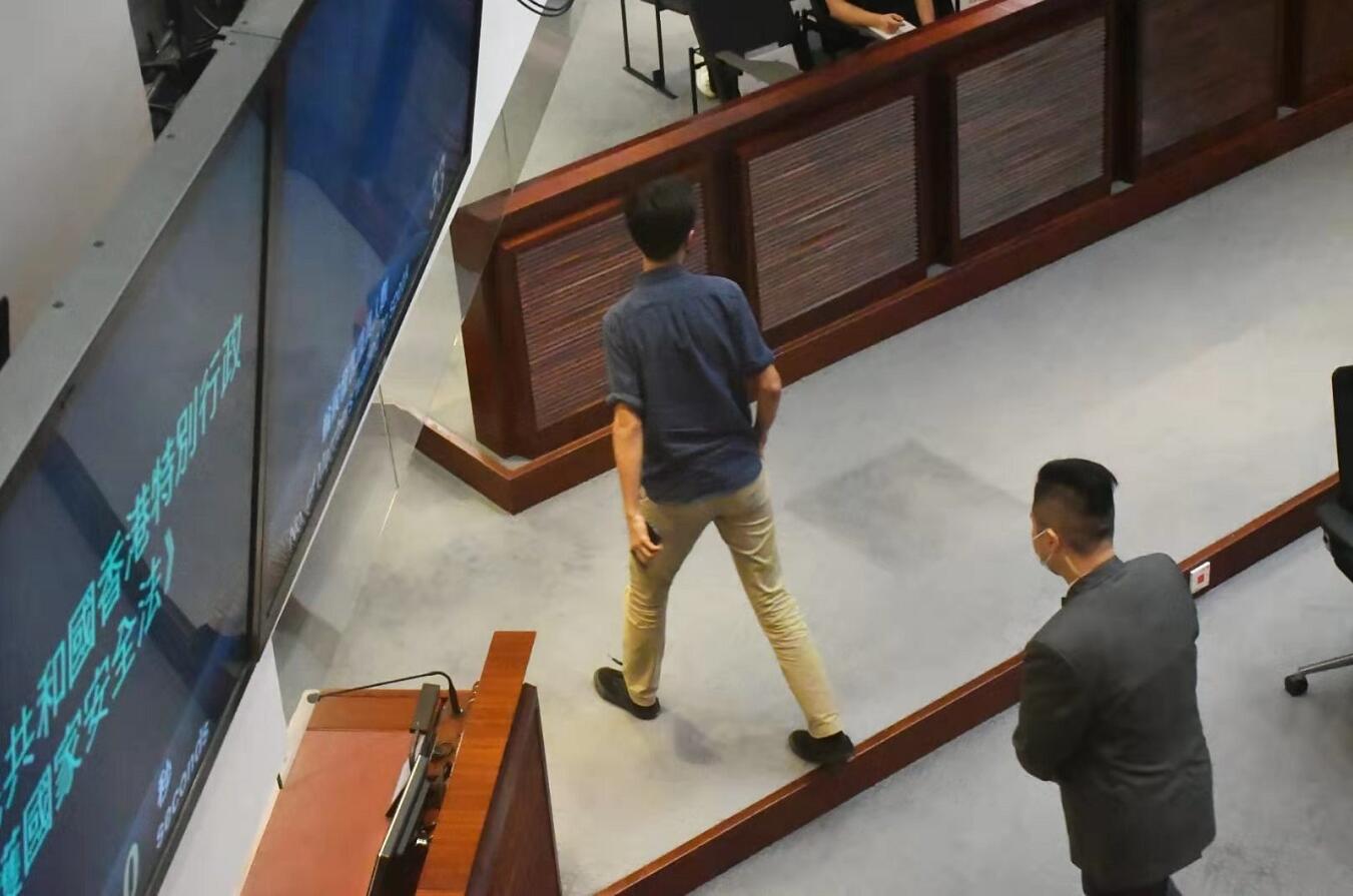 此外,反對派議員朱凱廸(下图)因發言侮辱官員、建制派議員,被主持會議的民建聯議員張國鈞驅趕離場。