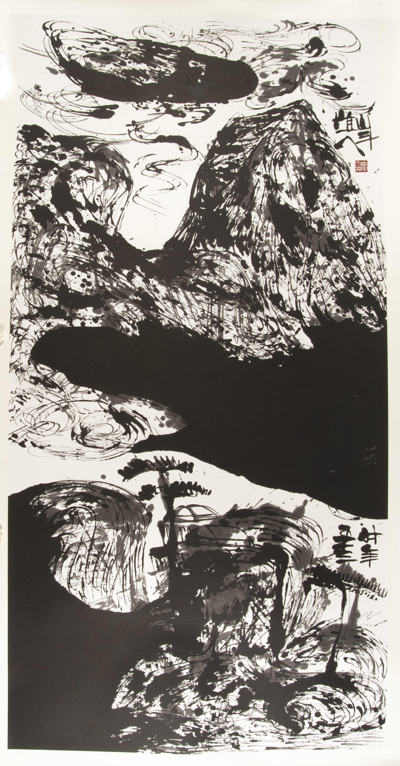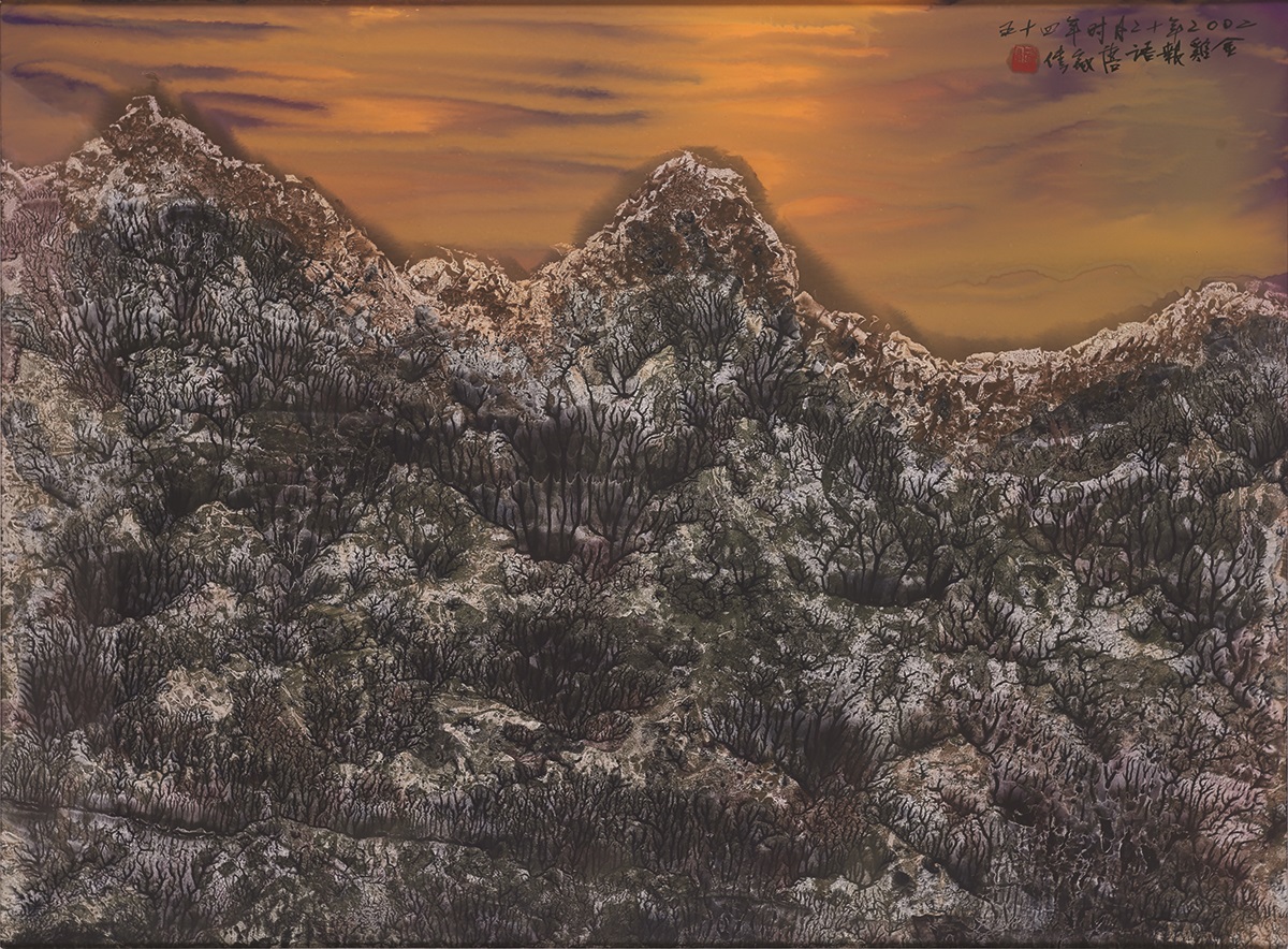 唐家偉作品《靈山9》,2010年。在畫作的右上方可見畫家的署名「山斗道人」。