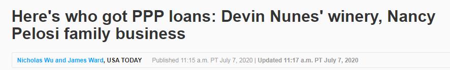 据环球时报7月8日援引美媒报道,美国政府7月6日公布了接受救济贷款的企业名单,美国媒体却发现,一些与华盛顿权势人物有潜在利益关联的机构也出现在这份名单上。其中,特朗普和佩洛西家族被一网打尽,特朗普名下写字楼内的20多家商户亦拿到了「救济款」,女婿库什纳相关企业获得总共135万至300万美元贷款,而佩洛西丈夫有关联的企业也在「救济款」名单上。此外,美国8名州长的关联企业获得贷款,既有民主党籍也有共和党籍州长,贷款额共计超过1000万美元。