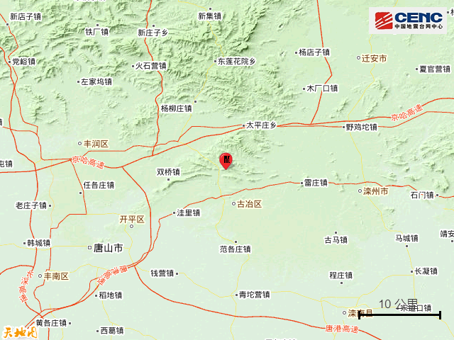 周边县城:震中距古冶区7公里、距开平区19公里、距滦州市23公里、距丰润区24公里、距路北区27公里,距唐山市28公里,距天津市132公里。