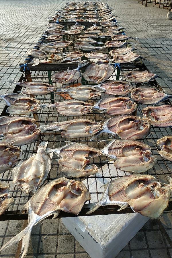 在碼頭岸邊,隨處可見在吸收陽光精華的鹹魚。