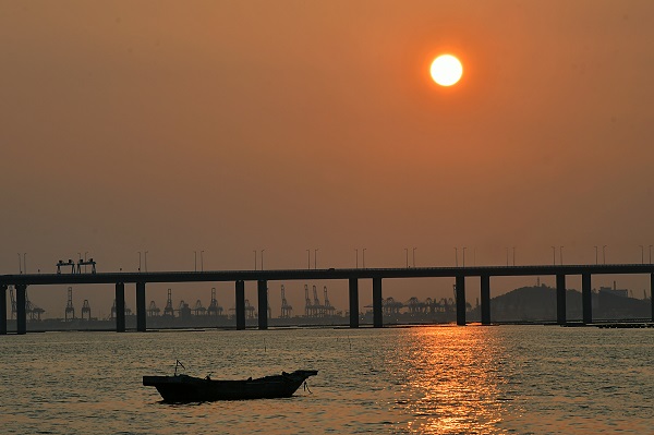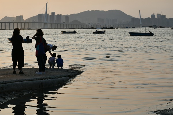 以對岸深圳為背景,深圳灣大橋作主角,在灘塗的襯托下,拍出滄海桑田的夕陽美景。