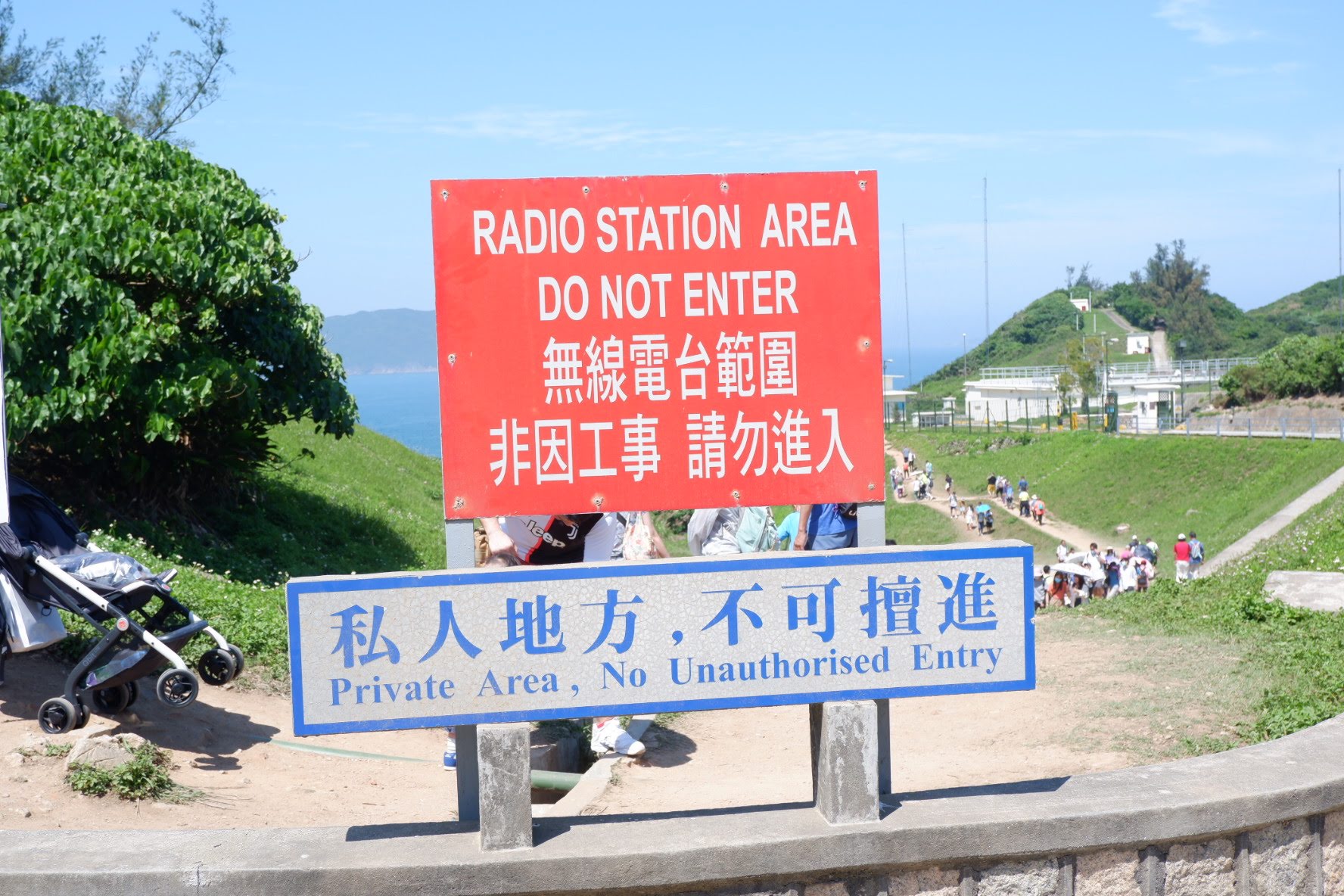 大約1小時後,到達無線電站的路口,有一個紅色告示牌寫着「非因工事,請勿進入」,不過不用擔心,不可擅進指的是右邊的電訊公司發射站範圍,你可以前進左邊的草坪,早已有一條由行山人士「開發」的小道。若遇上不確定的方向時,以往經驗告訴記者,只要跟着人群前行,準是沒錯的了。