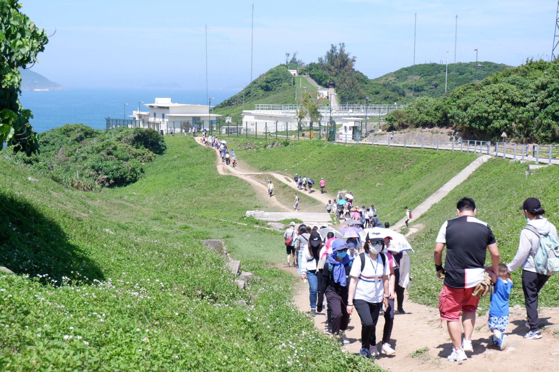 一大片的草地綠草如茵,小朋友在草坡上奔跑,大人在乘涼或拍照,令人心情也愉快起來。經過草坪,沿住無線電站的綠色欄杆外走,途中可以見到開揚的海景,疫情的陰霾被海風一掃而空,暫且享受着清新怡人的美景吧!記者一行人也在這個草坡逗留了近半小時才繼續起行,沿途看見不少人甚至推着嬰兒車帶小朋友來玩耍。