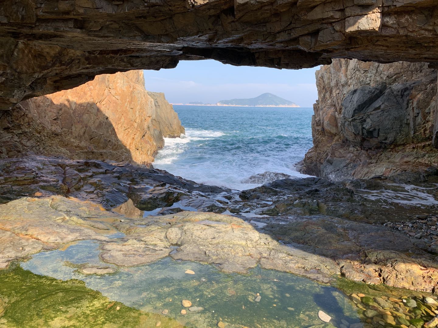 在鯨魚標本對出的海邊,就會看見海蝕洞「蟹洞」,又稱上帝之眼、彩虹之門,不少遊人都喜歡走到蟹洞底拍照,甚至到海邊觀浪,但務要警惕巨浪會隨時捲過來,而且但凡海水濺到、有海洋生物的位置也是禁區,主要作保育同科研用途,遊人接觸到海水的話有機會犯法。所以,在蟹洞前方欣賞一下便好了。
