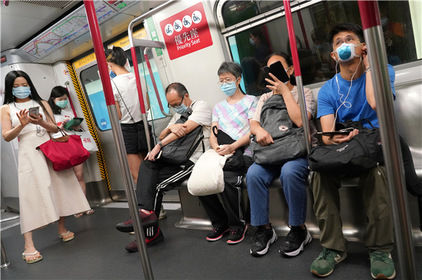 戴口罩令首日搭乘公共交通工具的市民都守法戴口罩。 中通社