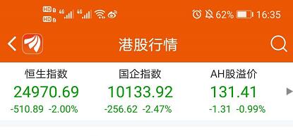 【香港商报网讯】受A股走势影响,恒指全天持续下行,早盘高开0.27%报25549点,开盘后曾短时高位反复,最高涨超90点,高见25576点。随后大市迅速转跌,午后跌幅进一步扩大,盘中最低跌超560点,低见24919点。