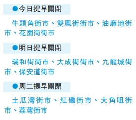 【香港商報網訊】記者馮仁樂報道:為進一步加強預防措施,食環署在未來數天會安排12個位於九龍區的街市(見表)陸續提早1小時關閉,於下午7時開始進行深層清潔消毒工作。