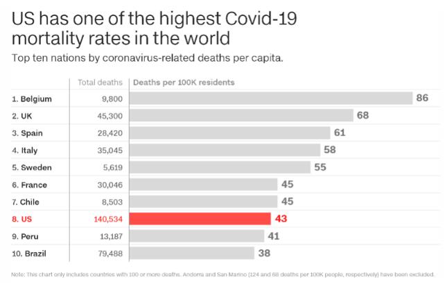 美国实际上是全世界“新冠死亡率”最高的国家之一,排在世界第8。图源:CNN