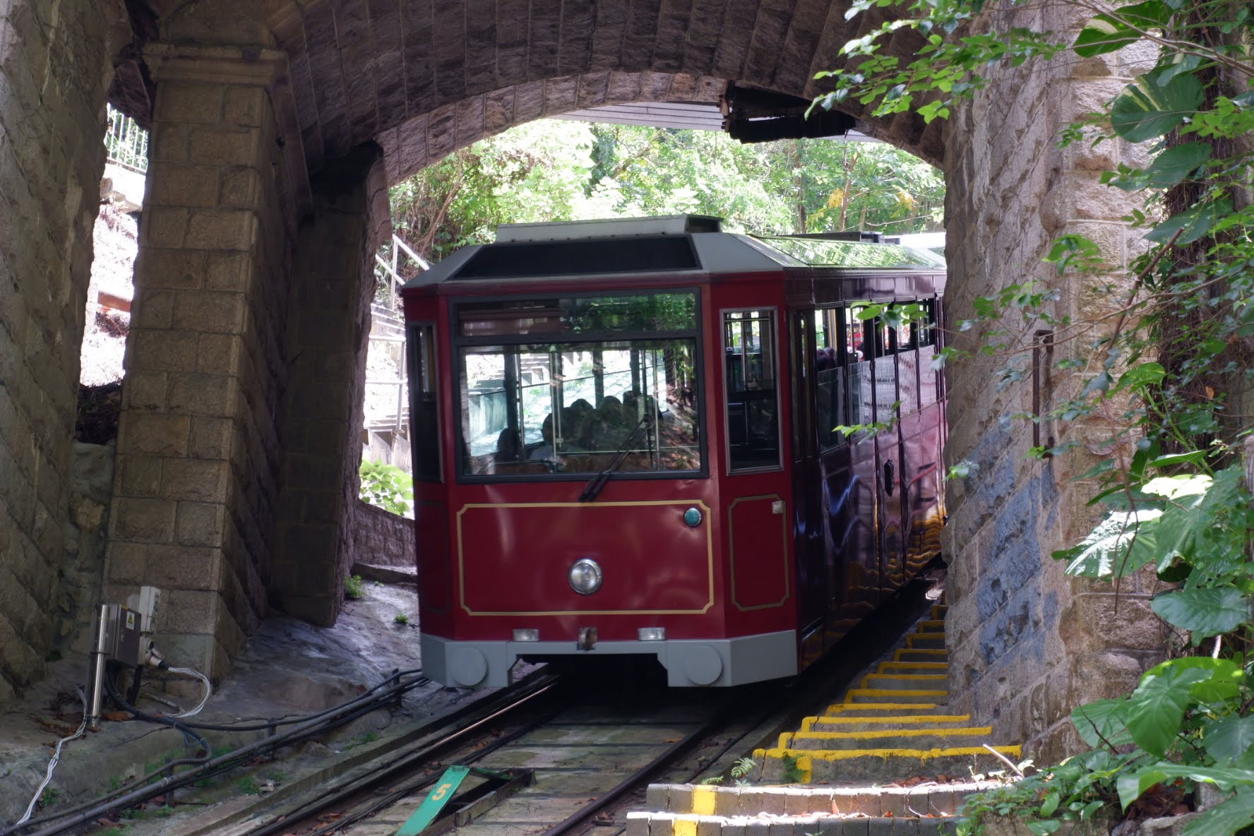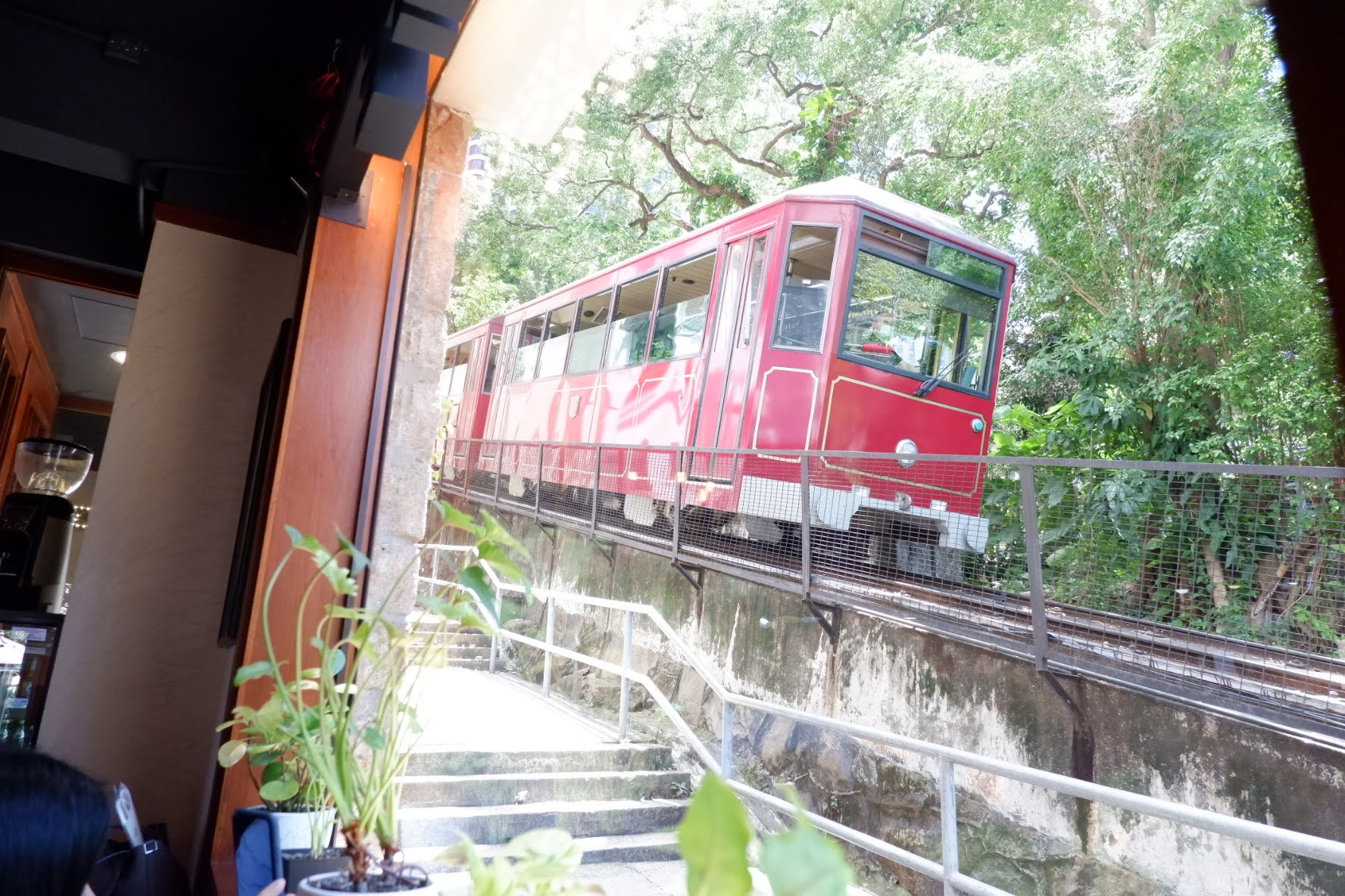 吃飽之後就開始這趟攻頂之旅,沿着纜車軌道一直往上行,偶爾看見纜車在旁邊經過,橫過堅尼地道繼續上山,會看見跨越該道路的纜車橋,一座黑色罩式的花樑鋼橋,富有懷舊情調。期間,道路雖然斜,但看着纜車軌行,疲累感也減半了。