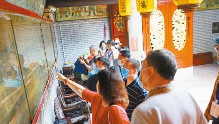 出得廟來,幾棵盛花的鳳凰木與古廟相映成輝,江蘇省作家協會副主席、省中華文化促進會副主席周桐淦掏出手機拍下美好畫面,並點評「此景只應此處有」。據介紹,每年農曆三月初三,傳說為北帝的誕辰,西鄉附近的八鄉村民雲集而至,舉行大型廟會。三月三廟會是目前深圳規模最大的傳統廟會,今年受疫情影響,廟會取消了線下活動,打造了一場「樂遊西鄉三月三」主題線上「雲遊」活動,推出「樂遊西鄉三月三」全景遊園H5、網絡專題、祈福祝願簽等線上產品,吸引了60萬人次觀看。