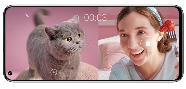 另外,透過Kirin 985 5G處理器及AI運算功能,可顯著提升人物及文字等相片的清晰度。兩機同時設有前後雙鏡拍攝功能,讓用家能夠同時以前置及後置鏡頭拍攝高清1080p的影片,製作出前後鏡頭人物或景物互相呼應的影片。
