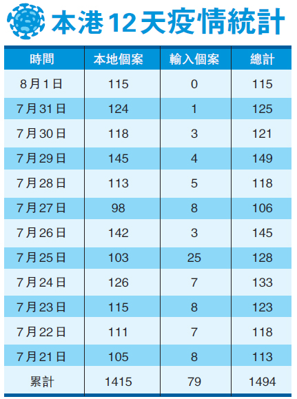 【香港商報網訊】記者何加祺報道:本港早前一日再增115宗新冠肺炎確診個案,全屬本地感染個案,已是連續12日過百宗。而醫管局再出烏龍事件,前日下午一名女病人被送往亞洲博覽館後,醫護人員晚上覆核時,發現電腦並無患者病毒檢測報告,其後發現她並非確診病人,隨即被送回瑪嘉烈醫院,測試結果對病毒呈陰性。醫管局昨就事件致歉。