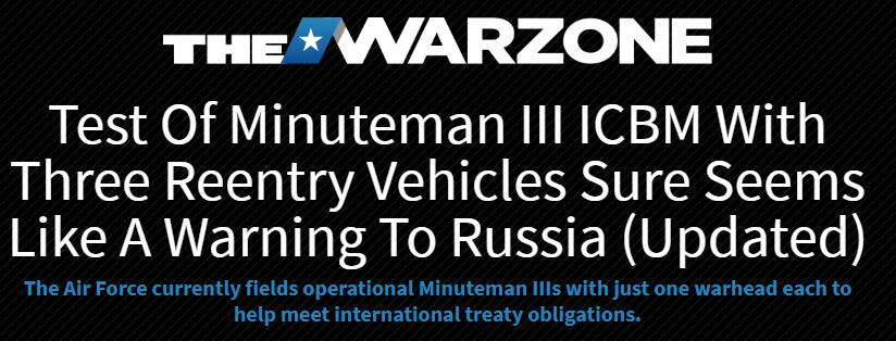 报道认为,这次试射很有可能是对“民兵”3导弹多弹头能力的一次测试,也是向俄罗斯传递一个信息:如果没有新的战略武器限制条约,美国的陆基核威慑力量将变得更具毁灭性。