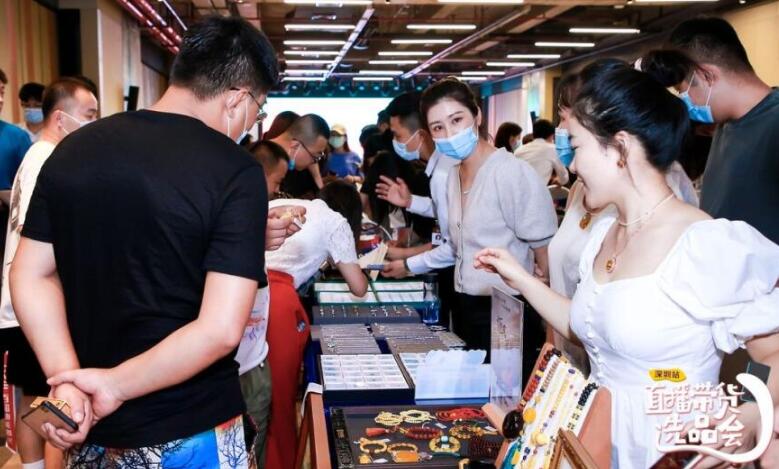 在本次直播帶貨選品會中,來自參與鵬城八月歡樂游購活動的深圳商家以及水貝珠寶的供應商攜各司產品來到現場,展示了上萬件琳琅滿目的直播商品。不僅有深圳各大知名品牌的黃金、珍珠和彩寶,各類戒指、項鍊、手鐲等首飾,也有知名化妝品、護膚品,網紅食品與日用品等,選品時尚潮流且性價比高。