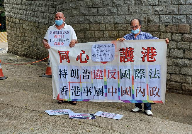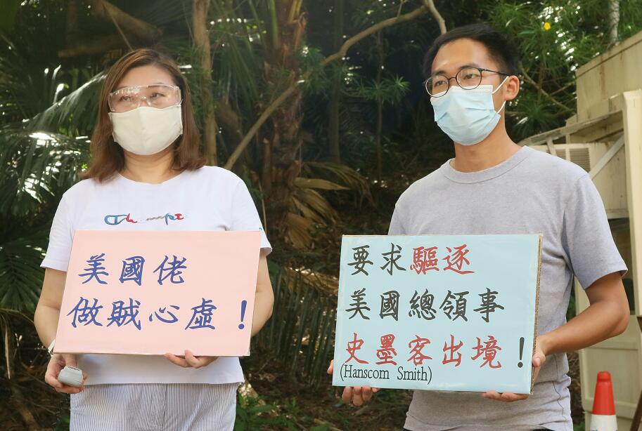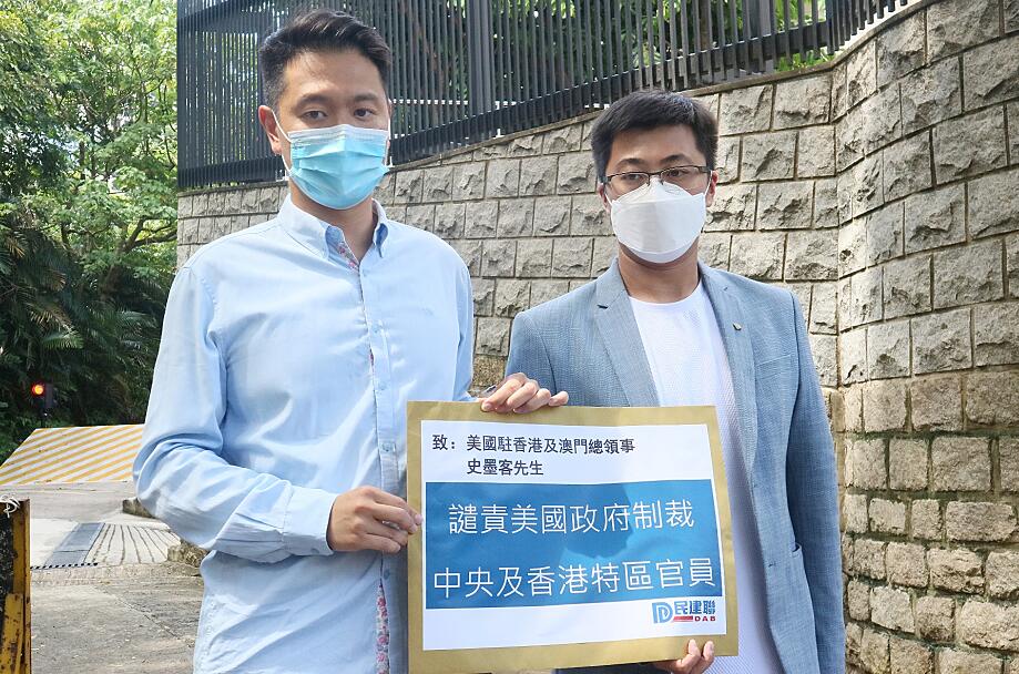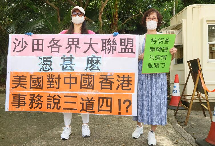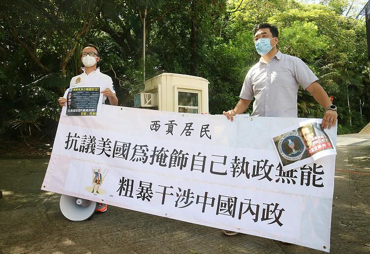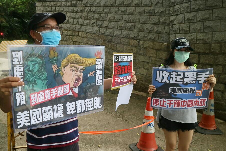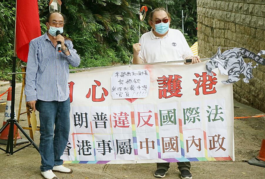 【香港商報網訊】今日(8日)下午繼續有多個團體到美國領事館示威,抗議美國提出制裁11名中國和香港官員,粗暴干預中國和香港內政,團體包括:民建聯、工聯會、反美大聯盟、同心護港、香港正義大聯盟、香港善美大聯盟、沙田各界大聯盟、西貢居民、將軍澳居民、東方之珠等,這些團體都指美國虛偽及雙重標準,對自己國家安全重視同時,卻對港區國安法落實加以干預。(香港商报记者馮瀚文攝)