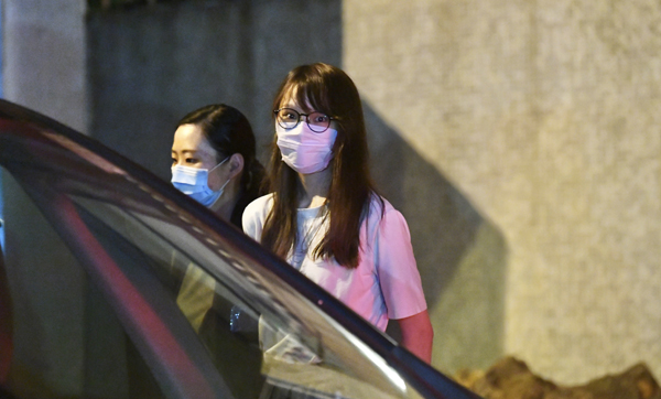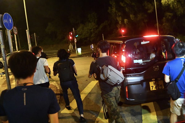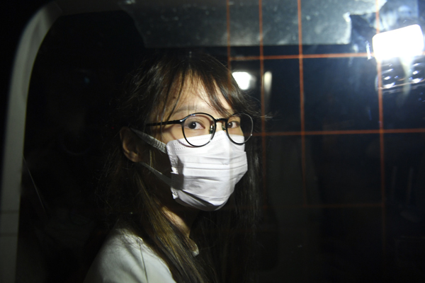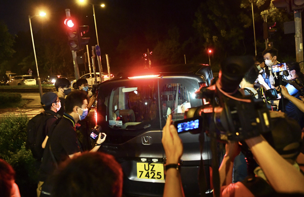 據香港中通社報道,8月10日晚上,前香港眾志成員周庭涉嫌違反《香港國安法》被捕。圖為警方人員晚上到其住所進行拘捕。(圖源:香港中通社)